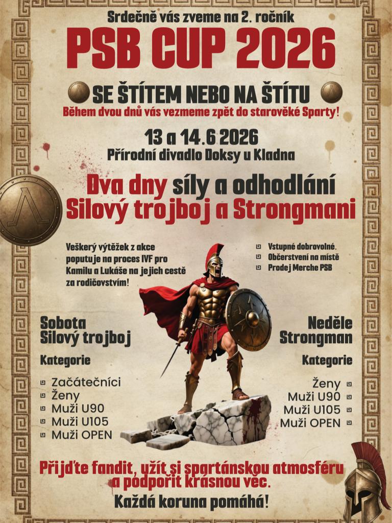 13.6.2026 proběhne závod v silovém trojboji a 14.6.2026 proběhne závod Strongmanů.